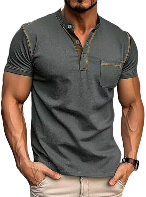 Men's Henley Shirts Short/Long Sleeve Casual Cotton T-Shirt Classic Button Basic Stylish Tees Tops